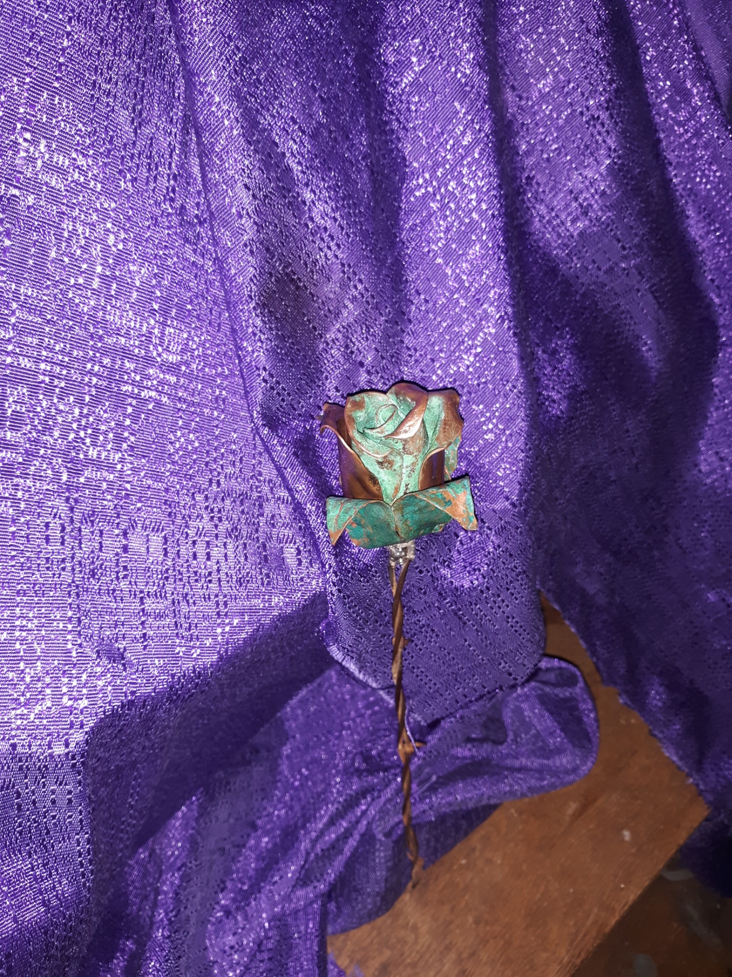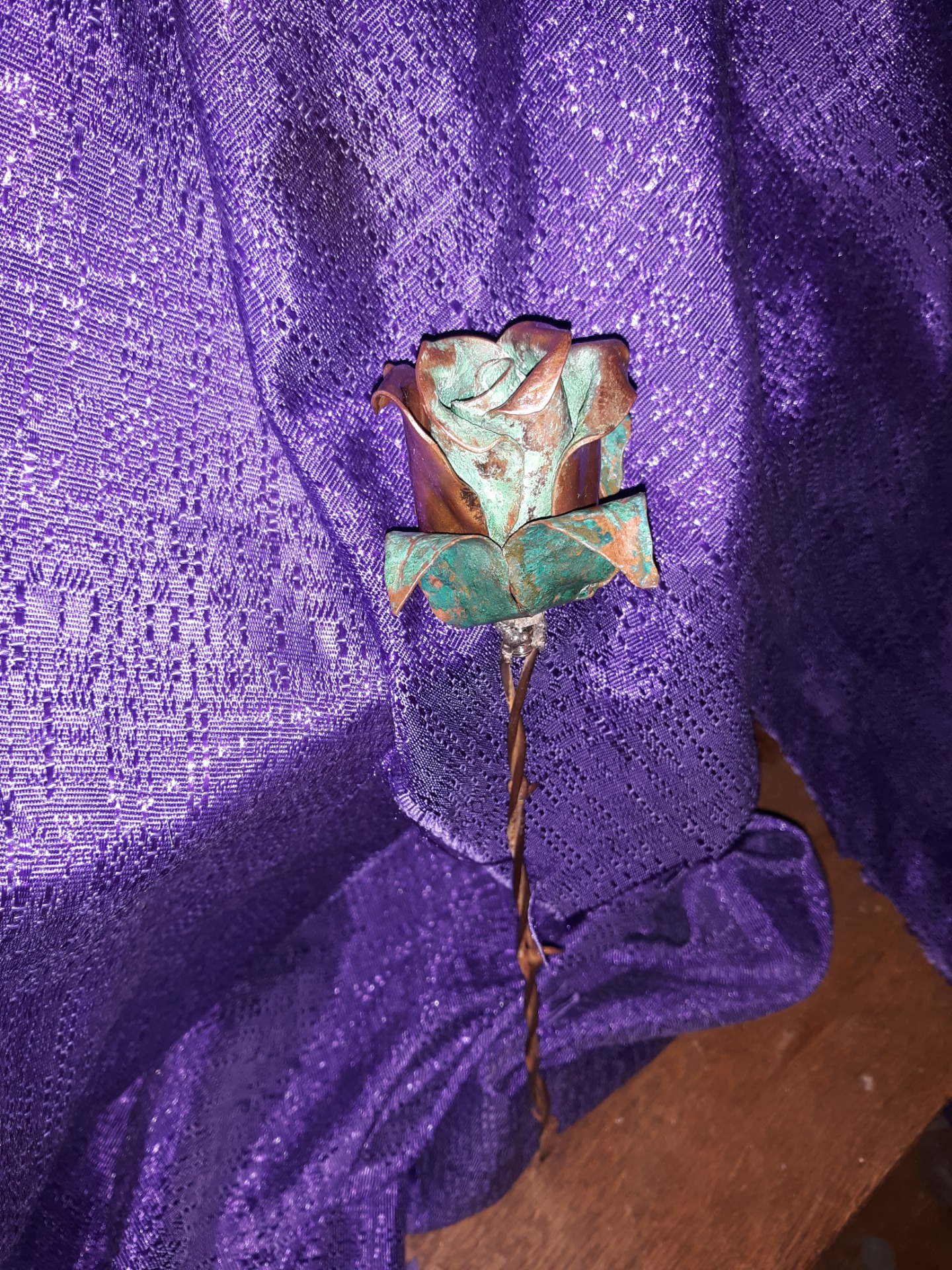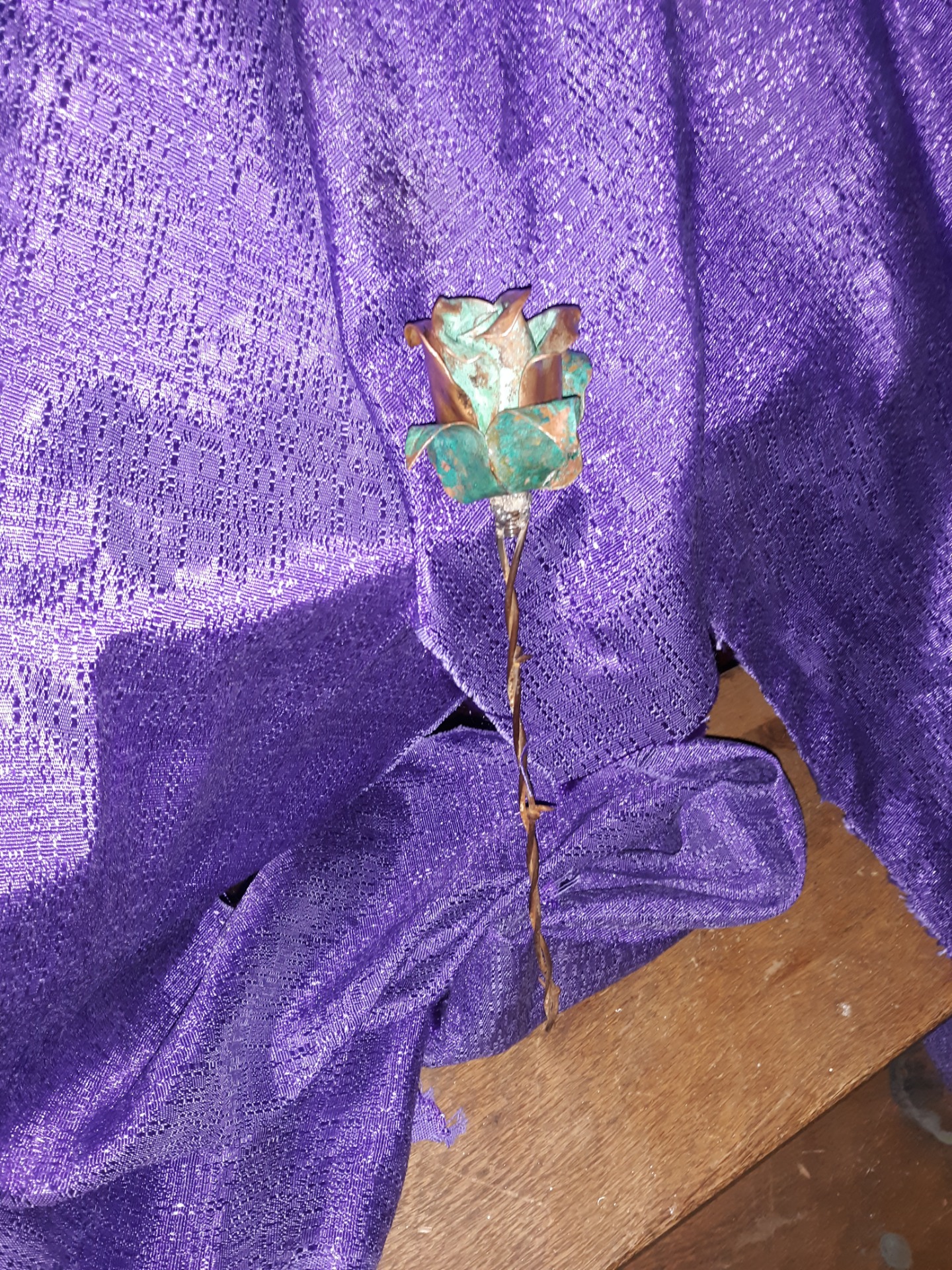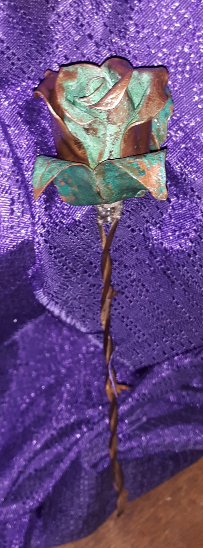 has a barb wire stem that is a repurposed part of a damaged fence along the oregon trail. It a beautiful rose that comes with a little part of history